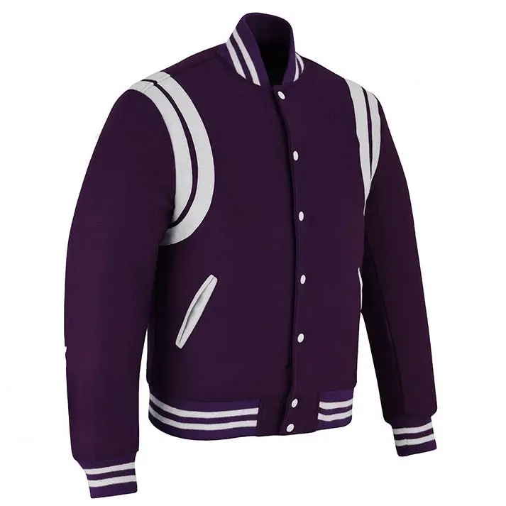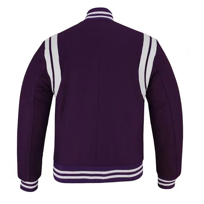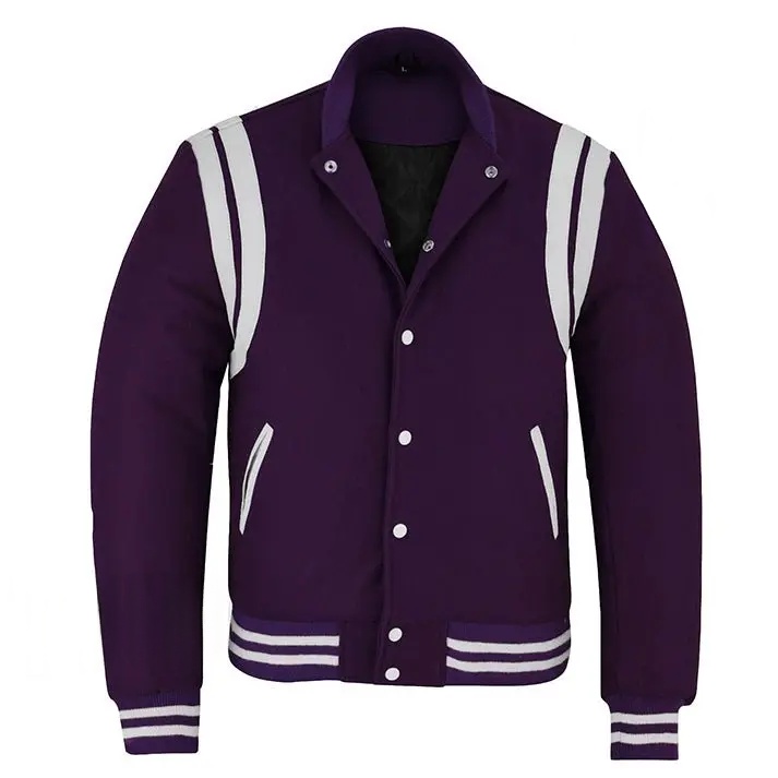 Be the first to review “Teddy – Purple -Classic Varsity Letterman Teddy Baseball College Purple Wool With White Double Leather Strip Jacket”