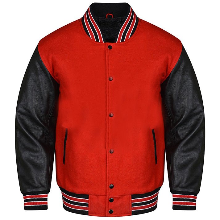 (red and black letterman jacket​) Letterman Jacket Custom- a perfect blend of style, Perfect for any occasion, this jacket exudes timeless charm and sophistication. Expertly crafted with quality materials, it’s a must-have for any fashion-forward individual.