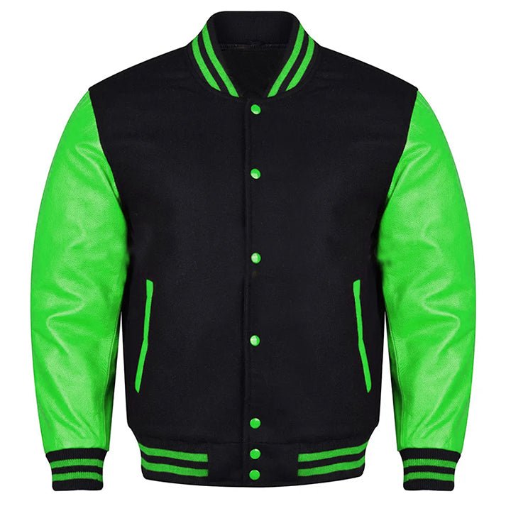 (varsity jacket green and black) Letterman Jacket Custom – a perfect blend of style, Perfect for any occasion, this jacket exudes timeless charm and sophistication. Expertly crafted with quality materials, it’s a must-have for any fashion-forward individual.